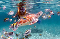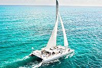 10% Set sail on a 75-foot catamaran in the Mexican Caribbean. Its towering mast, teak deck, and Mediterranean-inspired design, offer a perfect blend of comfort and elegance on the Mayan Riviera. Relax in the sun on the spacious deck, unwind in the shaded lounge, or enjoy a closer connection to the water with sturdy netting. The catamaran also has a premium sound system and a wide-screen TV for entertainment. Your adventure includes exclusive snorkeling at Punta Maroma, where you'll explore the Mesoamerican Barrier Reef's vibrant marine life. Professional guides ensure safety and an unforgettable experience, with optional gourmet snacks and drinks afterward. The catamaran is also available for sunset trips, offering a perfect way to end your day with stunning views and a relaxing atmosphere.