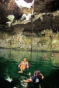 Tour the recently uncovered Mayan ruins of Ek Balam, and enjoy a variety of activities while cooling off at beautiful Cenote Maya, a brand-new off-the-beaten track adventure combo from Playa del Carmen Tours! THIS TOUR IS NO LONGER AVAILABLE We will start off with a guided tour of Ek Balam, an ancient Mayan city that thrived about 1500 years ago. It is amazing how well preserved these ruins are. Unlike popular ruins sites like Chichen Itza and Tulum, you can still climb the great Acropolis pyramid at Ek Balam, for dramatic views of the Riviera Maya. Ek Balam is much less visited than its fellow ruins sites and the less crowded environment is a perfect introduction to the legends and history of the Mayan empire. After the guided tour, you'll have time to explore on your own and take photographs. The next stop is nearby Cenote Maya, where you'll descend under the ground to a hidden freshwater pool. Here you can rappel into the cenote (there are stairs for the less adventurous) and zip line or swing on Tarzan's vine into the refreshing waters. We'll enjoy real Mayan delicacies at the local restaurant, and you can also watch the local artesans create authentic Mayan handicrafts, explore the gardens or relax in hammocks. When: Tuesday, Thursday and Saturday from 7:30 AM to 5:30 PM. Exact pick-up time depends on the location of your hotel, but will be shown on your confirmation.Where: Complimentary pickup at your Playa del Carmen or Riviera Maya hotel, or meet at Plaza Playacar in Playa del Carmen, one block from the Cozumel ferry terminal. How Long: 10 Hours Approximately Included Adventures: