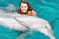 25% The Dolphin Encounter is our entry level dolphin swim, geared toward families with small children, people who can't swim or are not comfortable in deep water or anyone who wants to swim with dolphins but at a lower price point. This activity is performed in the water while standing on an underwater platform, where our other dolphin swims take place in deeper water where you are actually swimming. This activity is great for some cuddly dolphin photos without breaking the bank, and is sure to put smiles on everyone's faces - adults and kids alike. You will enjoy cuddling with the dolphins, watch some amazing dolphin tricks, and more. After the Dolphin activity, you can relax at the beach club and use the facilities. The beach is really gorgeous here. There is also a restaurant and bar, lounge chairs, even optional watersports, this is a great place to spend the day. Cruise Passengers: Yes! This makes a great cruise shore excursion. The dolphin center is only 10 minutes from the Calica cruise pier, and 15 minutes from the Playa del Carmen Ferry Pier! Dolphin Encounter Tour Highlights