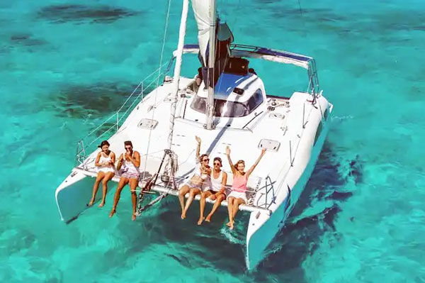10% Take this 13-passenger catamaran for a memorable adventure! Perfect for small groups, this private charter lets you enjoy the sea and the luxury of having your vesselall at an unbeatable price. Aboard this 32-foot beauty, youll experience an incredible day cruising along Cancuns coastline or heading to Isla Mujeres. This catamaran is designed for ultimate comfort, with sunny and shaded areas to suit everyone. Lounge on the trampoline, sip refreshing drinks on the top deck and soak in the stunning turquoise waters. Do you want to snorkel? Just let us know! Experience vibrant coral reefs teeming with colorful fish and marine life. Your trip is all about you! Choose the duration, customize your itinerary, and decide how to spend your day. Visit Isla Mujeres, enjoy lunch at a beach club, dive into snorkeling adventures, or sail the day away. With drinks flowing, music playing, and the perfect breeze, all that's missing is you! Larger Group? See our Private Catamaran Charter Cruise Passengers: Yes! This tour is great for a shore excursion. Meet at Plaza Playacar or at Marina Puerto Aventuras! Catamaran Sailing Tour Highlights