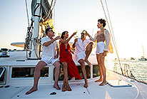 Get ready for a romantic evening in Playa del Carmen with your special ones. As you board your catamaran for a sunset cruise, you'll be welcomed with a glass of champagne. Savor tropical drinks from the open bar and delicious snacks while onboard music sets the perfect mood. After witnessing the breathtaking sunset, you'll be taken to a secluded beach where you can enjoy a delicious gourmet 4-course candlelit surf and turf dinner (if this option is chosen) or relax with cocktails while being serenaded by romantic tunes. When the mood strikes, take your group to the dance area by the water's edge. After dinner, immerse yourselves in live entertainment and dance the night away-truly a night in paradise. Cruise Passengers: Yes! This excursion is available to you and will work with most cruise schedules. See Also: Private 70' Sunset Cruise Runs: Daily at Sunset. Exact start time will be included on your confirmation. Duration: 2 Hours Approximately (Cocktail Cruise) and 4 Hours Approximately (Dinner Cruise). Departs: Complimentary pick-up from your Playa del Carmen hotel. Exact hotel pick-up time varies depending on the location of your hotel, but will be shown on your confirmation voucher. Cocktail Cruise Inclusions: