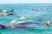 Isla Holbox is a small island of the north coast of the Yucatan Peninsula of Mexico. It is famous around the world for it's whale shark migration, first noted by the famed oceanographer Jacques Cousteau. Every summer, huge numbers of whale sharks grace the waters of Holbox to feed on the plankton blooms the summer brings - the largest gathering of such sharks in the world. During this tour you will get to actually swim and snorkel with the world's biggest fish - a once in a lifetime experience - one for the ages! Don't worry, though - the sharks are harmless, they eat only plankton. They don't even have teeth! THIS