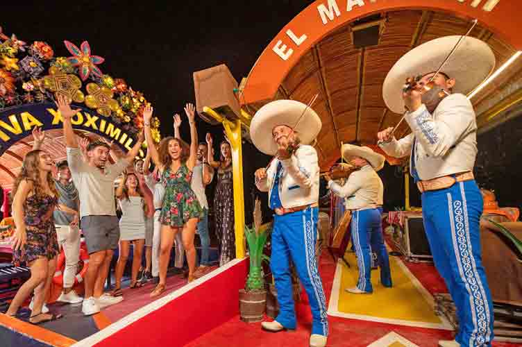 Experience the magic of a floating celebration! Join us at Xoximilco for an immersive journey into Mexican culture, traditions, and music. Step aboard a Trajinera, a traditional Mexican boat once used for transporting flowers, fruits, and vegetables, and embark on a delightful cruise through a Mexican feast of tequila and entertainment. This extraordinary traditional Mexican Fiesta comes to life as the sun sets. On the Trajinera, you'll be serenaded by the enchanting tunes of Mariachi and Marimba, fully engaging in an authentic fiesta experience as you glide through the canals of Xoximilco in Playa del Carmen. At Xoximilco, the festivities go beyond the typical Mexican Fiesta. Amidst singing, dancing, and revelry beneath the stars, you'll also embark on a cultural voyage, surrounded by the vibrant hues, captivating sounds, and delicious flavors that define Mexico. This journey offers a profound appreciation for the traditions and folklore of Mexico's rich history, ensuring an unforgettable and delightful experience for everyone! Join us for a night of great fun! Cruise Passengers: Sorry, but this tour is not compatible with most cruise ship schedules. However, you can do our Private Xcaret Express and enjoy the park all day. When: Daily at 6:30 PM. Exact pickup time will depend on your hotel, and will be specified on your e-ticket. Where: Pickup at your Playa del Carmen Hotel How Long: 3 Hours Approximately. Includes: